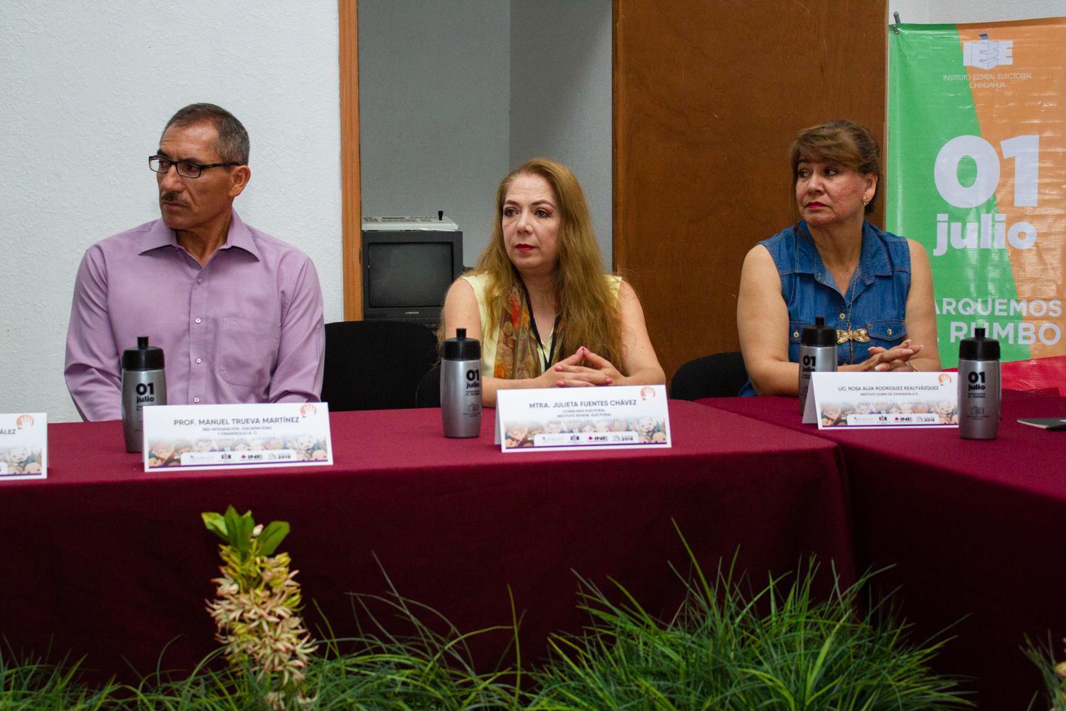 Entre las y los asistentes estuvieron: María Eugenia Falomir Morales, de la Dirección de Atención a Grupos Vulnerables; Manuel Trueva Martínez, de la Red Integración, Discapacidad y Desarrollo A.C.; José Luis Armendáriz, presidente de la Comisión Estatal de los Derechos Humanos; Rosa Alva Rodríguez, Realyvázquez, del Instituto Down de Chihuahua A.C.; Cecilia González Rusek, del Instituto José David A.C.; José Luis Tam, del Centro de Estudios para Invidentes A.C.; Leonardo Muñoz Valera, de la Asociación de Intérpretes y Traductores del Estado de Chihuahua; María del Carmen Calleros Ochoa, de Jóvenes en Movimiento A.C. y Tomás Aguilera, del Instituto Estatal del Deporte y Cultura Física.