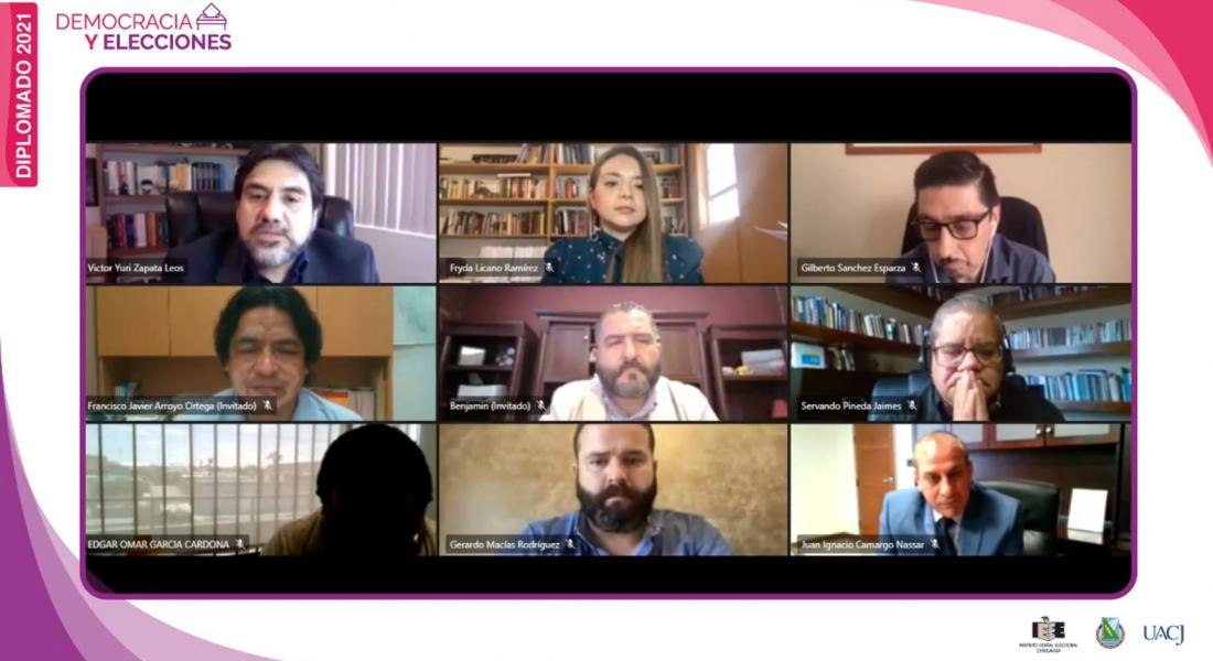 Chihuahua, Chih. — Tras casi tres meses de clases, el 15 de mayo concluyó el Diplomado 2021 “Democracia y Elecciones”, organizado por el Instituto Estatal Electoral de Chihuahua (IEE), la Universidad Autónoma de Chihuahua (UACH), y la Universidad Autónoma de Ciudad Juárez (UACJ) y cuya ceremonia de clausura reunió de manera virtual a ciudadanas y ciudadanos que cursaron el diplomado, autoridades electorales y docentes de las dos máximas casas de estudio de la entidad.