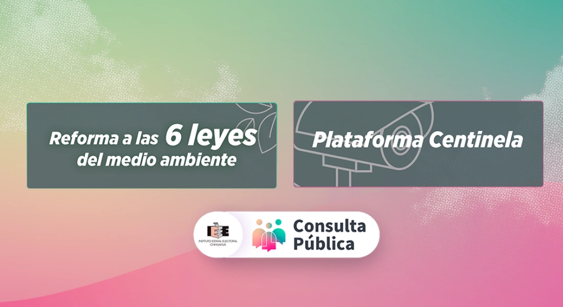 Chihuahua, Chih.— A una semana de que concluyan las consultas públicas “Plataforma Centinela” y “Relativa a la Reforma Ambiental”, el Instituto Estatal Electoral de Chihuahua (IEE) invita a la población chihuahuense a participar en estos ejercicios que se desarrollan en todo en territorio estatal, del 17 al 31 de marzo.